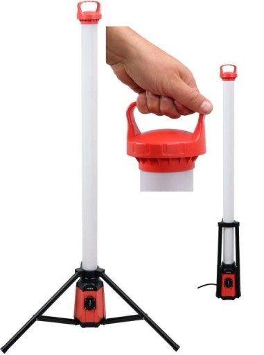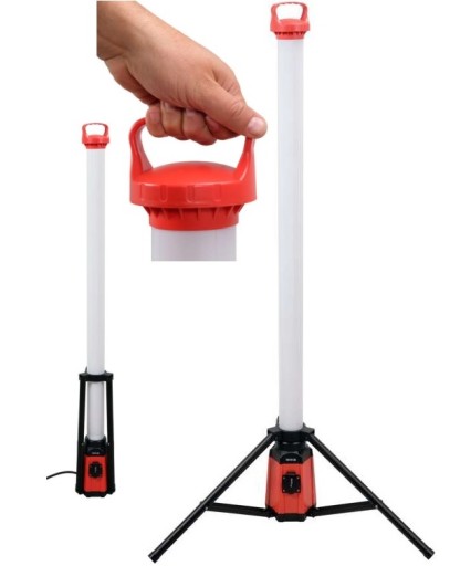Lampa ze składanym statywem przeznaczona do stosowania wewnątrz i na zewnątrz pomieszczeń. Tryb pracy 7500 lm zapewnia bardzo dobre oświetlenie przestrzeni roboczej w każdym kierunku. Dodatkowym atutem jest wbudowane gniazdo elektryczne, do którego można podłączyć sprzęt o maksymalnej mocy 3000 W.