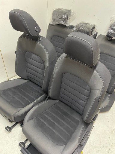 KOMPLETNA TAPICERKA MATERIAŁ Z ALCANTARĄ PRZESZYWANA BIAŁĄ NITKĄ FOTELE PRZEDNIE PODGRZEWANE