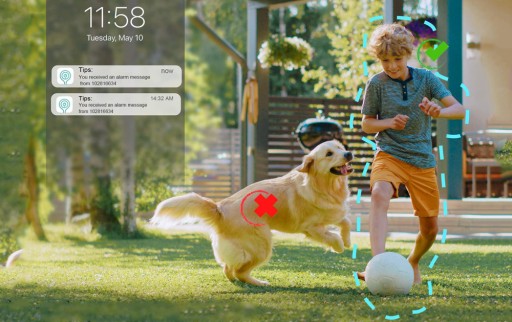 Ulepszony czujnik PIR i regulowana czułość umożliwiają przechwytywanie tylko ludzkiego ruchu. Reflektory i alerty włączają się automatycznie po zarejestrowaniu ruchu. Po uruchomieniu telefon otrzyma powiadomienie o ruchu w czasie rzeczywistym w ciągu 0,2 s-1 s i automatycznie zapisze wideo na wybranej karcie micro SD/chmurze. Kamera bezpieczeństwa ma zoptymalizowany algorytm, który zmniejsza liczbę fałszywych alarmów o około 50% po wykryciu.