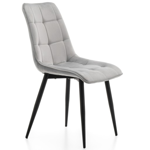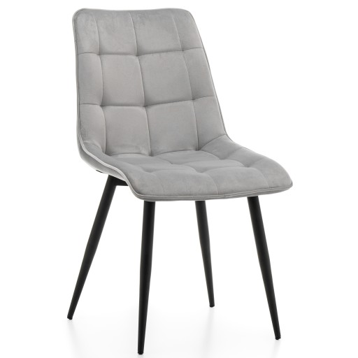 Tapicerka welurowego krzesła zapewnia miękkość, wygodę oraz komfort na wysokim poziomie. Ten wysokogatunkowy materiał genialnie się prezentuje oraz nadaje powierzchni krzesła wyjątkowej gładkości, co sprawia, że siedzenie na nim jest bardzo przyjemne. W krześle zastosowano miękką piankę tapicerską. Dodatkowo oparcie i siedzisko zostało upiększone efektownym pikowaniem, które dodaje uroku. Świetnym uzupełnieniem są metalowe profilowane nogi malowane proszkowo w kolorze czarnym.