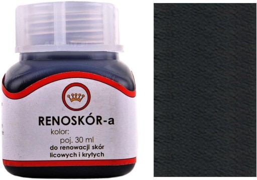 - CZARNY 58 farba do skór licowych i krytych RENOSKÓR 30 ml - 1 sztuka ( jeśli potrzebny jest inny z produkowanych kolorów, wówczas należy go określić wyłącznie w uwagach do formularza dostawy zamówienia ) .
