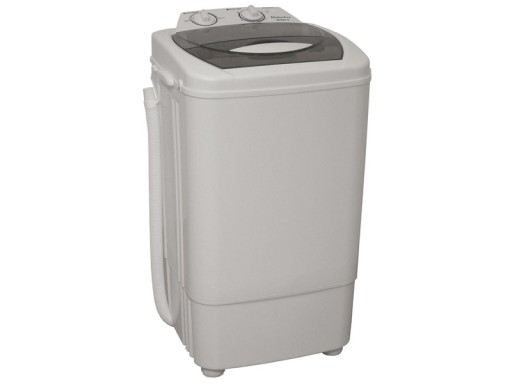 Pralka wirnikowa z obudową wykonaną z tworzywa sztucznego odporna na korozję. Urządzenie ma pojemność 6,5 kg.