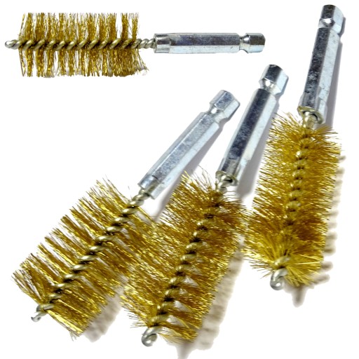 Szczotka do czyszczenia gniazd wtryskiwaczy stalowa, powlekana mosiądzem.