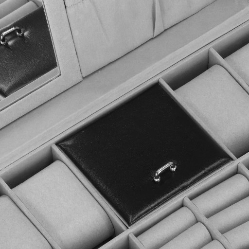 Jeśli nie posiadasz aż tylu zegarków by wypełnić wnętrze kasetki, możesz wyjąć poduszki dedykowane kształtowi zegarków i bransolet i wykorzystać je jako przegródki na inne akcesoria - spinki do mankietów, pierścionki, kolczyki lub wisiorki.