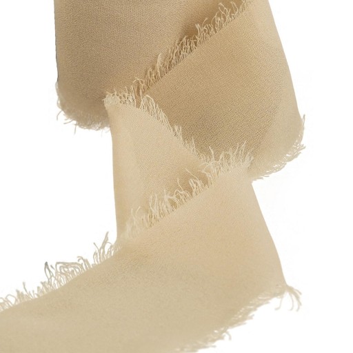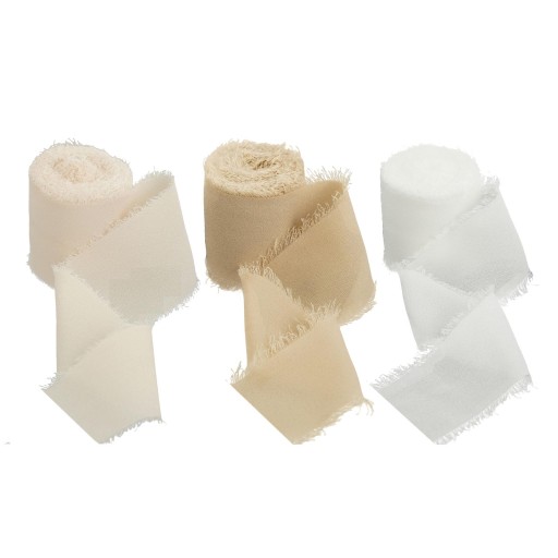 Fringe Chiffon Silk-Like Ribbons for Wedding Bouquets Decor White+Beige