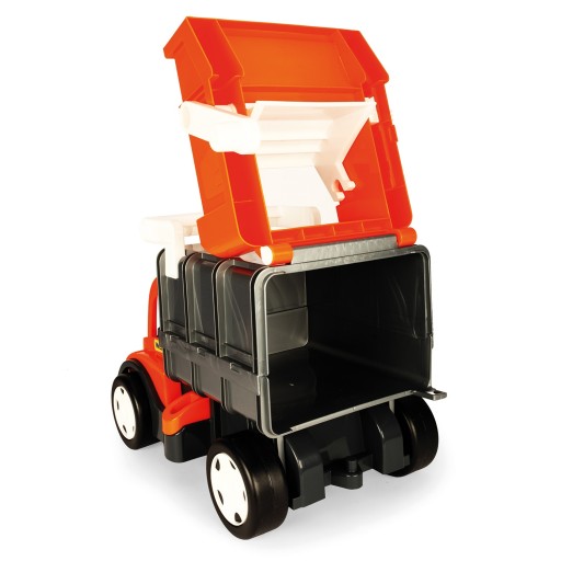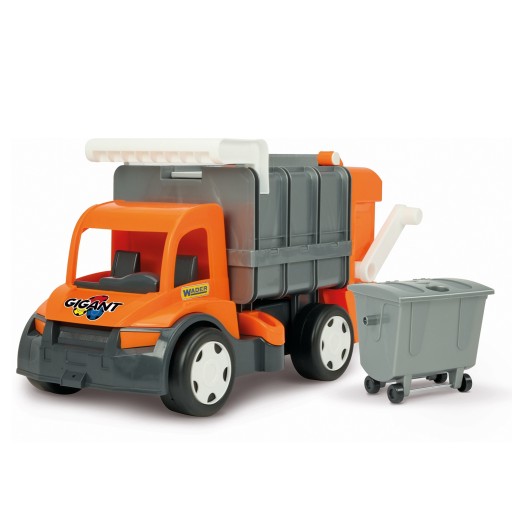 Zabawka Roku 2017 – Gigant Śmieciarka to wielki, wytrzymały pojazd o długości 60 cm w kolorze pomarańczowym. Śmieciarka wyposażona jest w ruchomy podnośnik do opróżniania kontenerów, posiada otwieraną tylną klapę. W zestawie znajduje się kontener na śmieci, który można przyczepić do tyłu samochodu. Ruchome elementy, mocna konstrukcja o udźwigu do 50 kg, która odwzorowuje prawdziwy pojazd to gwarancja atrakcyjnej zabawy. Całość wykonana jest z wysokiej jakości tworzywa sztucznego odpornego na warunki atmosferyczne.
