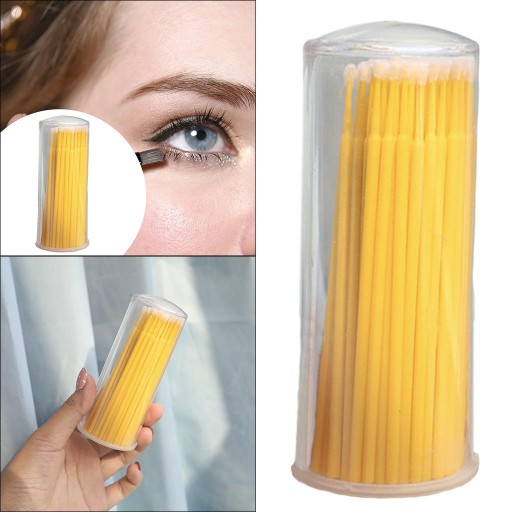 100 SZTUK Wacik Do Rzęs Jednorazowy Do Makijażu Oczu 96x2.1mm Głowa żółta