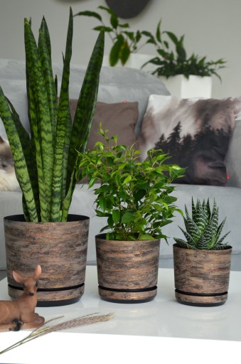 Dzięki dostępności w 7 rozmiarach doniczki Dekor są rewelacyjne do posadzenia dużych roślin, i aranżowania kompozycji wielogatunkowych, jak i do mniejszych roślin ustawianych w części mieszkalnej. Doniczki w rozmiarach 12cm, 14cm i 16cm idealnie pasują do parapetów, stołów lub półek, doskonale nadają się jako doniczki do ziół w kuchni.
