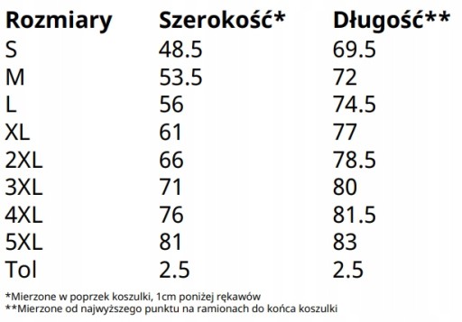 - Zmierz długość od najwyższego miejsca do dołu koszulki.