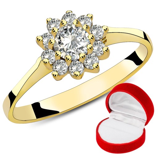 PIERŚCIONEK ZARĘCZYNOWY KWIAT Z KAMIENIAMI ZŁOTO