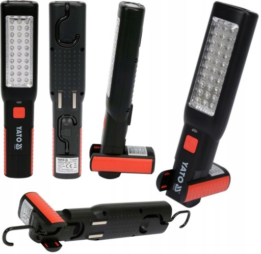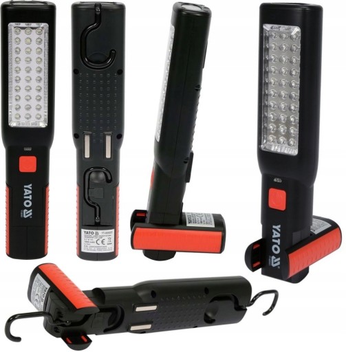 Akumulatorowa lampa warsztatowa YATO ze światłem głównym 100lm oraz latarką 45lm.