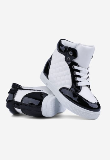 Sneakersy dziecięce ,na niskim obcasie i uktytym koturnie .Wierzch został wykonany z materiału tekstylnego w połaczeniu z lakierkiem. Zapinane na suwak z boku, dodatkowo posiadają sznurowadła. Do sportowych ,lużnych strojów ,bedą idealne .