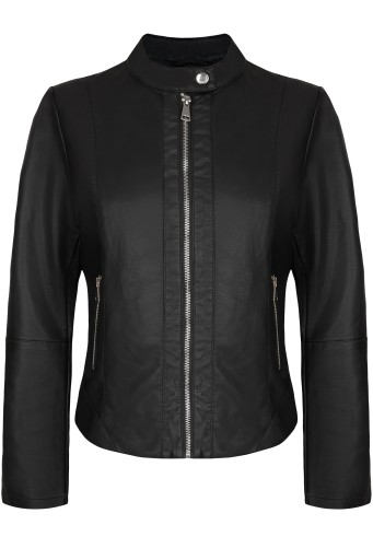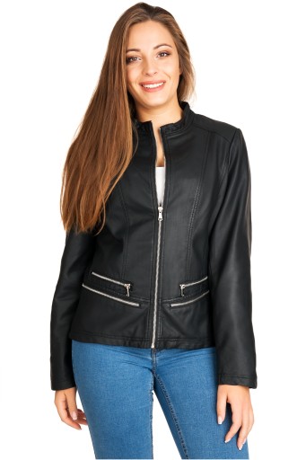 KURTKA DAMSKA SKÓRZANA PRZEJŚCIOWA CZARNA
