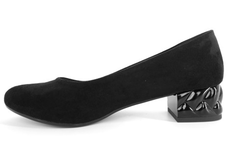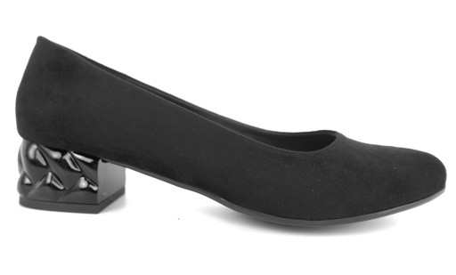 CZÓŁENKA CZARNE ZAMSZOWE Z OZDOBNYM OBCASEM