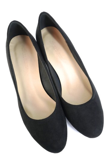CZÓŁENKA CZARNE ZAMSZOWE Z OZDOBNYM OBCASEM