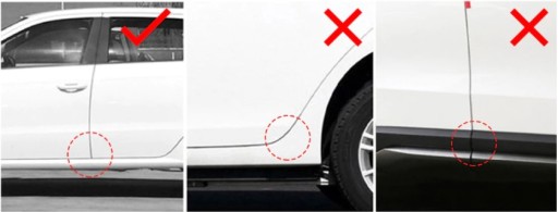 Zabezpiecz kanty (krawędzie, narożniki) drzwi gdy stajesz blisko wysokich krawężników aby zapobiec odpryśnięciu lakieru. Skutek odpryśnięcia lakieru może spowodować dostanie się wody i powstawanie rdzy.