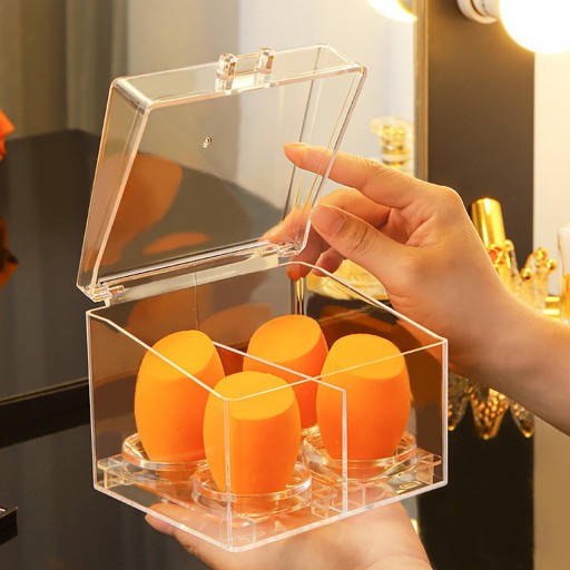 Pudełko do przechowywania z przezroczystą pokrywą: Przezroczysty pojemnik do makijażu na , odporny na kurz projekt okładki, prosty i praktyczny
