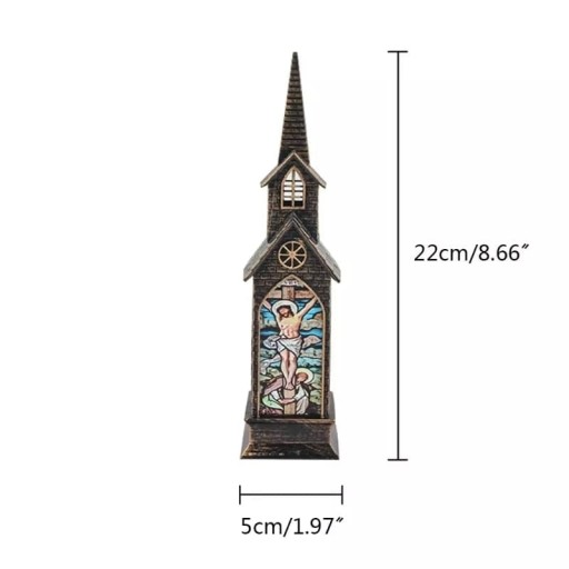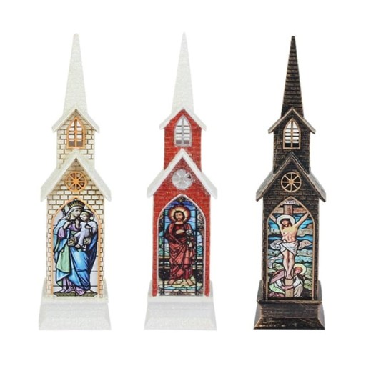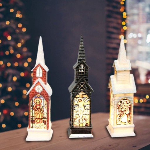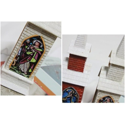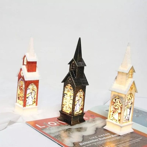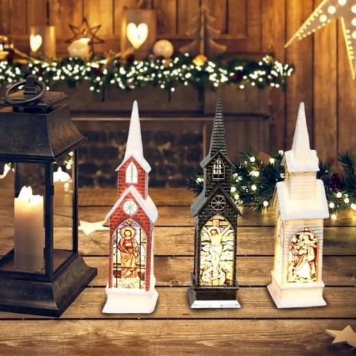 WIEŻA KOŚCIÓŁEK WITRAŻ LAMPION LED OZDOBA ŚWIĄTECZNA