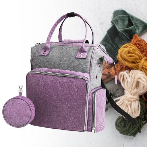 Torba Na Druty Plecak Knitting Crochet Supply Storage Organizer Szary Fioletowy