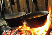 Tempo gotowania zależy od intensywności płomieni lub wysokości kociołka nad nimi.