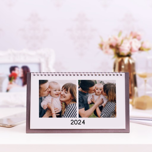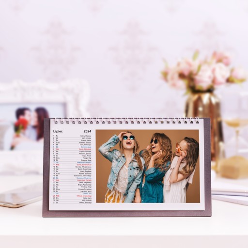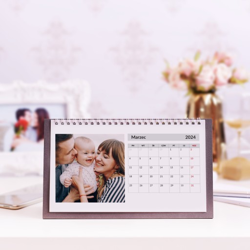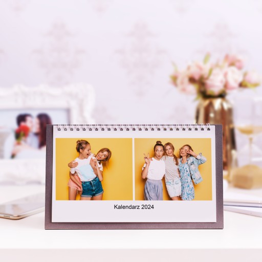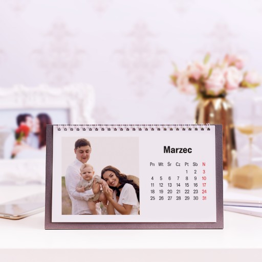 FotoKalendarz biurkowy z Twoimi zdjęciami subtelnie ozdobi Twoje biurko. Nadaje się jednak nie tylko do biura. Mieszkanie również zyska na estetyce, jeśli umieścisz go na stole w salonie czy blacie w kuchni.