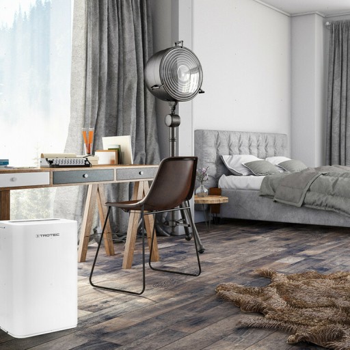 Osuszacz powietrza Trotec TTK 52 E to kompaktowe urządzenie do osuszania oraz do utrzymywania niskiego poziomu wilgotności powietrza w pomieszczeniach o powierzchni do 31 m2. Sprawdzi się w mieszkaniu, piwnicy oraz w biurze. Urządzenie jest wyposażone w sterowany higrostatycznie, automatyczny system osuszania. W trybie tym urządzenie dąży do uzyskania ustawionej przez użytkownika wartości wilgotności powietrza. Oprócz osuszania powietrza w pomieszczeniu, osuszacz może być zastosowany do komfortowego suszenia prania. Przyspiesza to proces suszenia wiszącej odzieży i zapobiega osadzaniu się w pomieszczeniu wilgoci zawartej w praniu. Osuszacz powietrza Trotec TTK 52 E oferuje wydajność osuszania na poziomie do 16 l dziennie i może działać w temperaturach już od 5oC do 32oC.