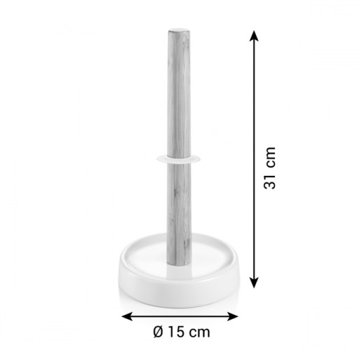 Doskonały do łatwego odrywania ręczników papierowych w rolkach wszystkich popularnych rozmiarów. Stojak został wykonany z ceramiki z wysokiej jakości glazurą, naturalnego bambusa oraz silikonu. Czyścić wilgotną ściereczką, nie należy myć w zmywarce.