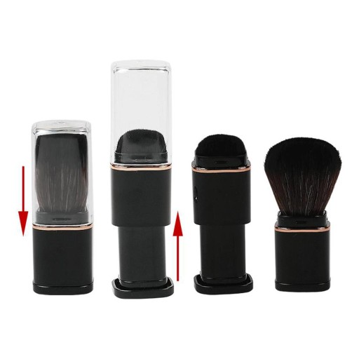 Przenośny Chowany Pędzel Do Makijażu Z Osłoną Na Puder Sypki Do Różu W Kolorze Czarnym