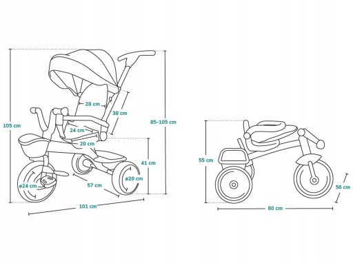 - Wymiary po złożeniu: 80 x 56 x 55 cm