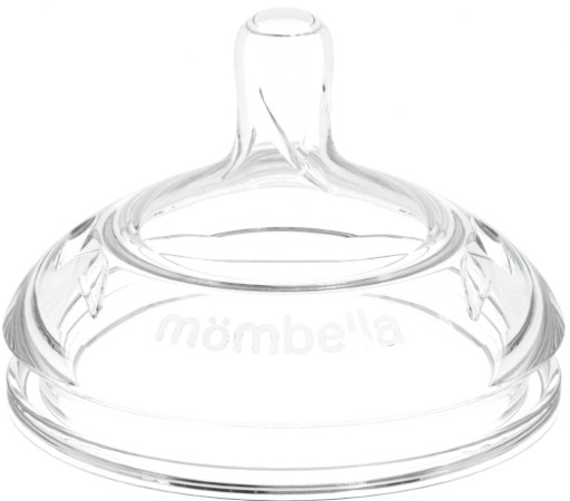 Smoczek w butelkach antykolkowych Mombella swym dużym, okrągłym kształtem przypomina pierś mamy. Wykonano go z miękkiego, przyjemnego w dotyku, a przy tym naturalnie higienicznego silikonu, który swą strukturą zbliżony jest do skóry mamy. W ten sposób niemowlę doświadcza znajomej bliskości, jest mniej nerwowe, a dzięki temu łatwiej jest mu się nauczyć picia z butelki.