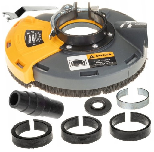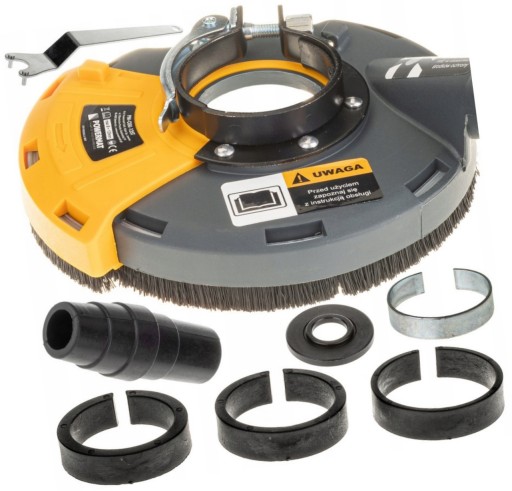 - Osłona przeciwpyłowa umożliwia skuteczne odsysanie szkodliwego pyłu podczas szlifowania powierzchni płaskich.