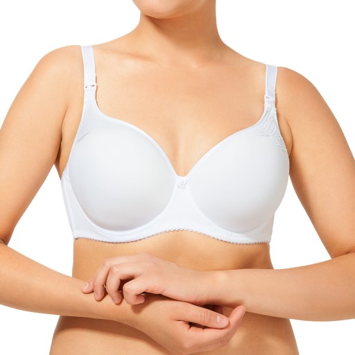 Béatrice 1672 to komfortowy biustonosz dla karmiących mam. Pokrywa go gładki, oddychający materiał, zapewniający właściwy przepływ powietrza oraz wygodę noszenia nawet w obliczu wysokich temperatur. Klips, który pozwala na odpięcie ramiączka i odchylenie miseczki jest niemal niewidoczny, pomagając młodej mamie zachować pełną dyskrecję. Biustonosz zawiera także elastyczną siateczkę podtrzymującą piersi, zwiększając przez to poczucie komfortu. Dzięki regulowanym ramiączkom i trzyrzędowemu zapięciu na podwójnych haftkach, z łatwością możemy dopasować stanik do swojego ciała. Znajdująca się na mostku subtelna ozdoba podkreśli wdzięk oraz elegancję każdej kobiety.