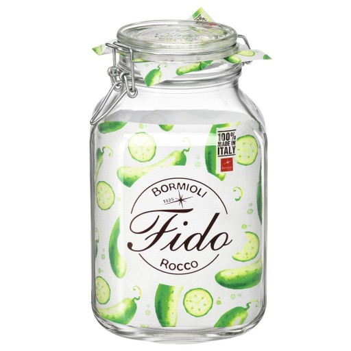 Słoik szklany ze szczelną pokrywą Fido producenta Bormioli Rocco. Wykonany z wysokiej jakości szkła, idealny do przechowywania suchych i płynnych produktów czy przetworów. Pojemność 3l.
