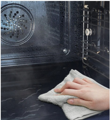 Czyszczenie parą to szybka i wygodna metoda, niewymagająca użycia detergentów. Żeby skutecznie wyczyścić piekarnik, wystarczy wlać do środka odrobinę wody i wybrać funkcję czyszczenia parą, która skutecznie rozpuści zabrudzenia. Na koniec zabrudzenia można z łatwością usunąć za pomocą ściereczki.