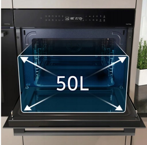 Kompaktowy piekarnik z mikrofalami o pojemności 50l. Posiada łączność WiFi i SmartThings Cooking, czyszczenie parowe.