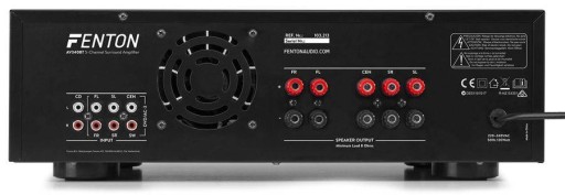 Fenton AV340BT jest wyposażony w 5 wyjść do podłączenia głośników. Oba wyjścia przednie mają moc 180W na wyjście. W przypadku innych wyjść dostępne jest 50W na wyjście. Całkowita moc AV340BT dochodzi więc do 510W, dzięki czemu można zbudować potężny system surround. Aby dostosować dźwięk do własnych upodobań, wzmacniacz wyposażony jest w regulację tonów wysokich, średnich i niskich oraz balans.
