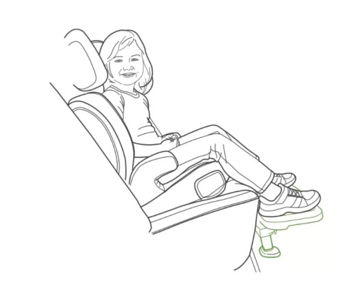 Jego przemyślana konstrukcja w innowacyjny sposób w pełni podpiera nóżki i kolana młodego pasażera. Jest on dedykowany dla dzieci w wieku od 2 do 9 lat zapewniając pełny punkt podparcia dla stóp w czasie podróży.