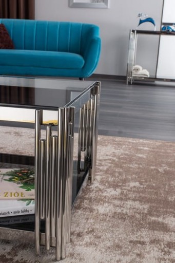 Nowoczesna konsola Fossil C od firmy Signal to modny, pełen fantazji mebel, który doda szyku każdemu wnętrzu. Będzie idealnym dopełnieniem mieszkania urządzonego w stylu glamour. Blat i dolna półka konsolki wykonane zostały z hartowanego dymionego szkła, trwałego i łatwego w utrzymaniu czystości. Cała konstrukcja opiera się na stabilnym chromowanym stelażu, wykonanym z niezwykłą starannością. Połączenie chromowanej podstawy i dymionego szkła tworzy niezwykle elegancki, pełen szyku mebel.