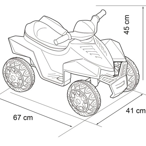 Fantastyczny czerwony Quad na akumulator 6V firmy Feber dla wymagających. Wyprodukowany na podstawie najnowszych technologii oraz najwyższych norm bezpieczeństwa. Pojazd może poruszać się z prędkością do 2 km/h z niezwykłą stabilnością, zapewniając przy tym bezpieczeństwo Twojego dziecka. Gaz i hamulec znajduje się w jednym pedale. Quad jest idealny dla dzieci w wieku od 18 miesiąca i nadaje się do użytku w domu jak i na zewnątrz.