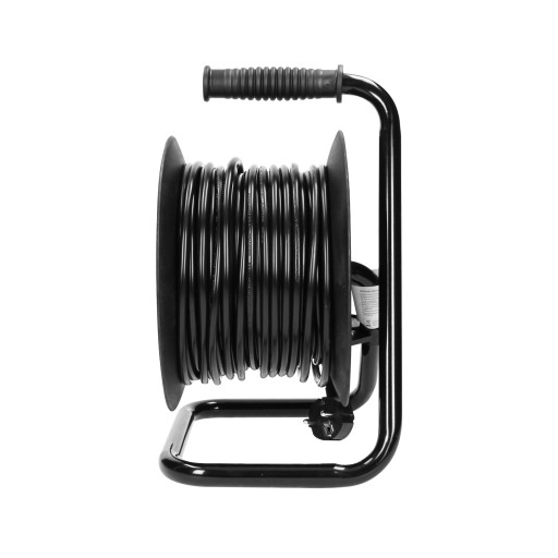 Przedłużacz bębnowy na zwijanym bębnie z metalowym stojakiem oraz zabezpieczeniem przeciążeniowym w postaci wyłącznika termicznego. Posiada cztery gniazda sieciowe z uziemieniem i przesłonami torów prądowych, wygodny, gumowy uchwyt do przenoszenia, obracający się uchwyt do zwijania kabla, blokadę obrotu bębna oraz wtyczkę zalewaną. Idealny w domu, na działce, w biurze itp.