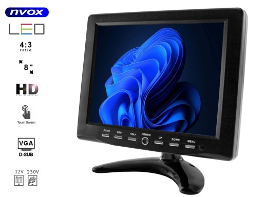 Монитор NVOX 8-дюймовый сенсорный ЖК-дисплей AV VGA 12 В 230 В