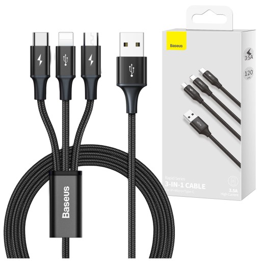 Kabel USB 3w1 do iPhone Micro Type-C 3.5A Baseus