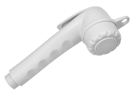 Słuchawka prysznicowa z włącznikiem wykonana z PCV. W zestawie komplet uszczelek.
