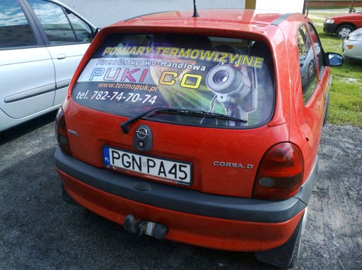 Reklama dodatkowo jest pokryta lakierem UV. Druk jest odporny na warunki atmosferyczne, a laminat dodatkowo zwiększa żywotność kolorów. Możliwe dorobienie także reklam na boczne szyby, busy lub samochody ciężarowe - napisz, podaj wymiary-wycenimy!