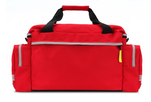 Całość torby uzupełniają elementy odblaskowe, które znacząco poprawiają widoczność ratownika w nocy.