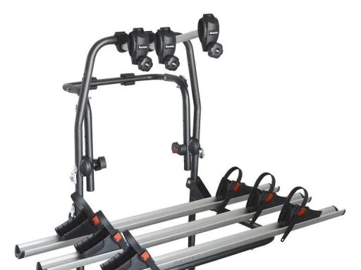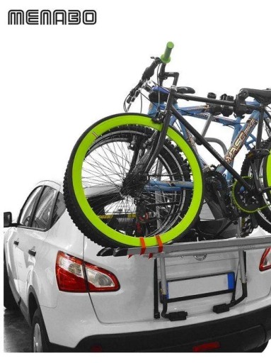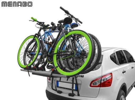 Wysokiej jakości uchwyt rowerowy włoskiego producenta Menabo, montowany na klapę samochodu.