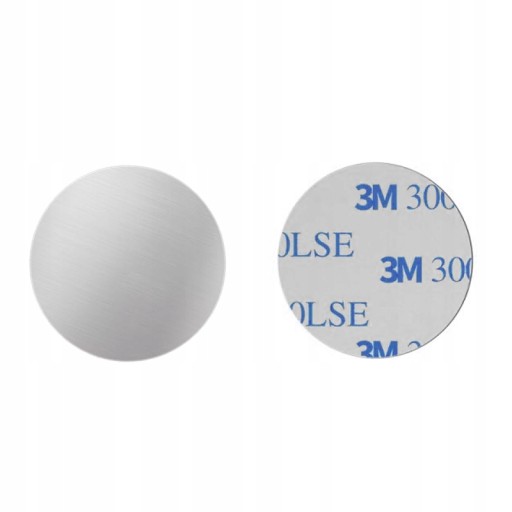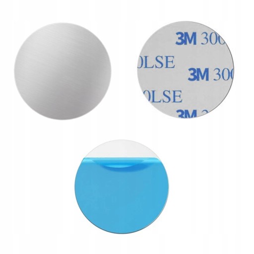 - 1x blaszka srebrna z połyskiem z naklejką 3M o średnicy 30mm