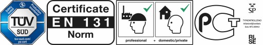 - Antypoślizgowe stopki zapewniające bezpieczną pracę na drabinie.