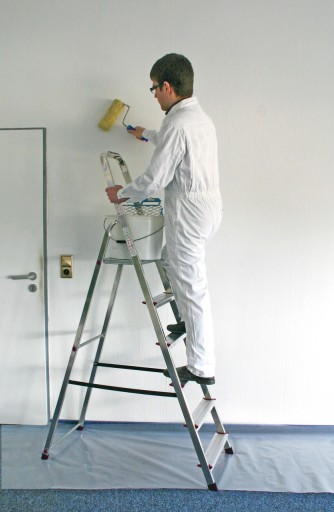 Drabina wolnostojąca z jednostronnym wejściem i wygodną platformą roboczą.
