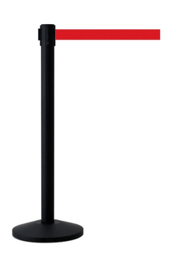 Do zaoferowania mamy słupki odgradzające wykonane ze stali malowanej proszkowo na kolor czarny z taśmą o długości 2 m w kolorze czerwonym - długość taśmy jest płynnie regulowana poprzez mechanizm samo-zwijający.